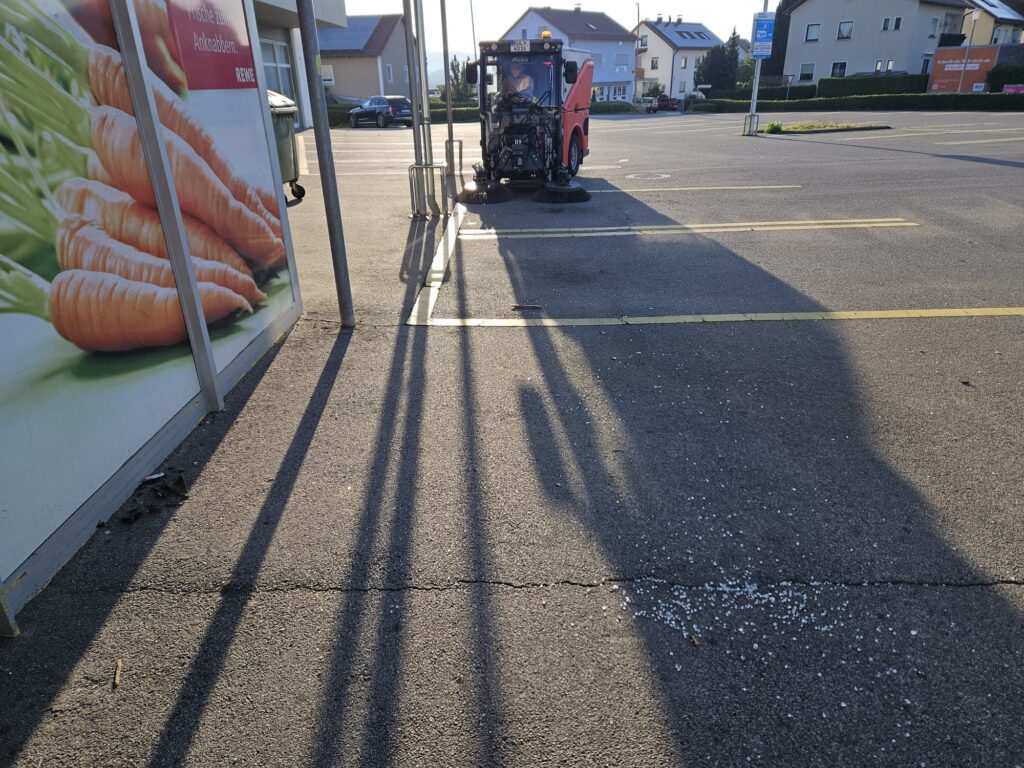 Reinigung Supermarktparkplätze mit unserer Kehrmaschine